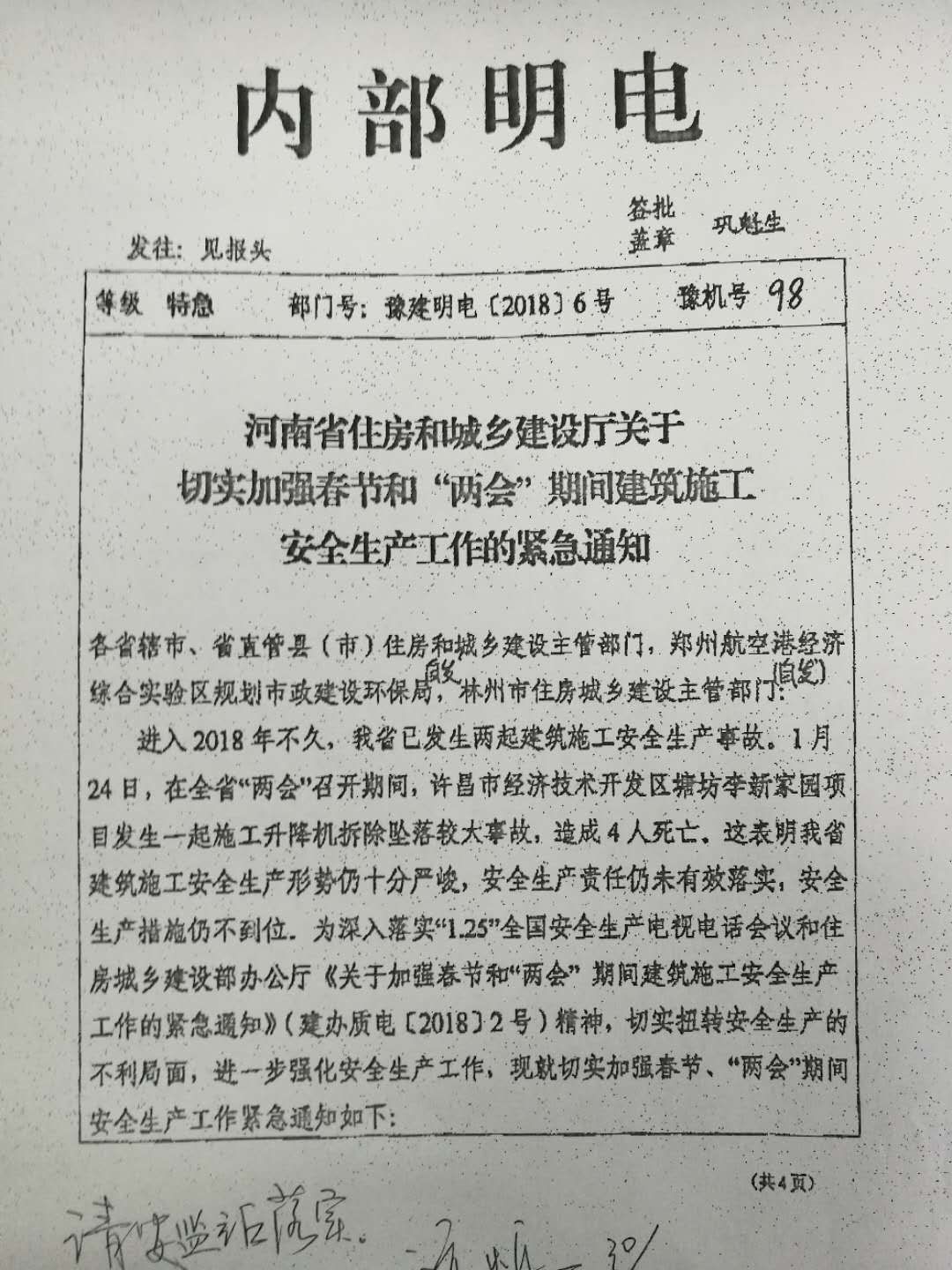 建筑施工期間安全生產(chǎn)工作的通知