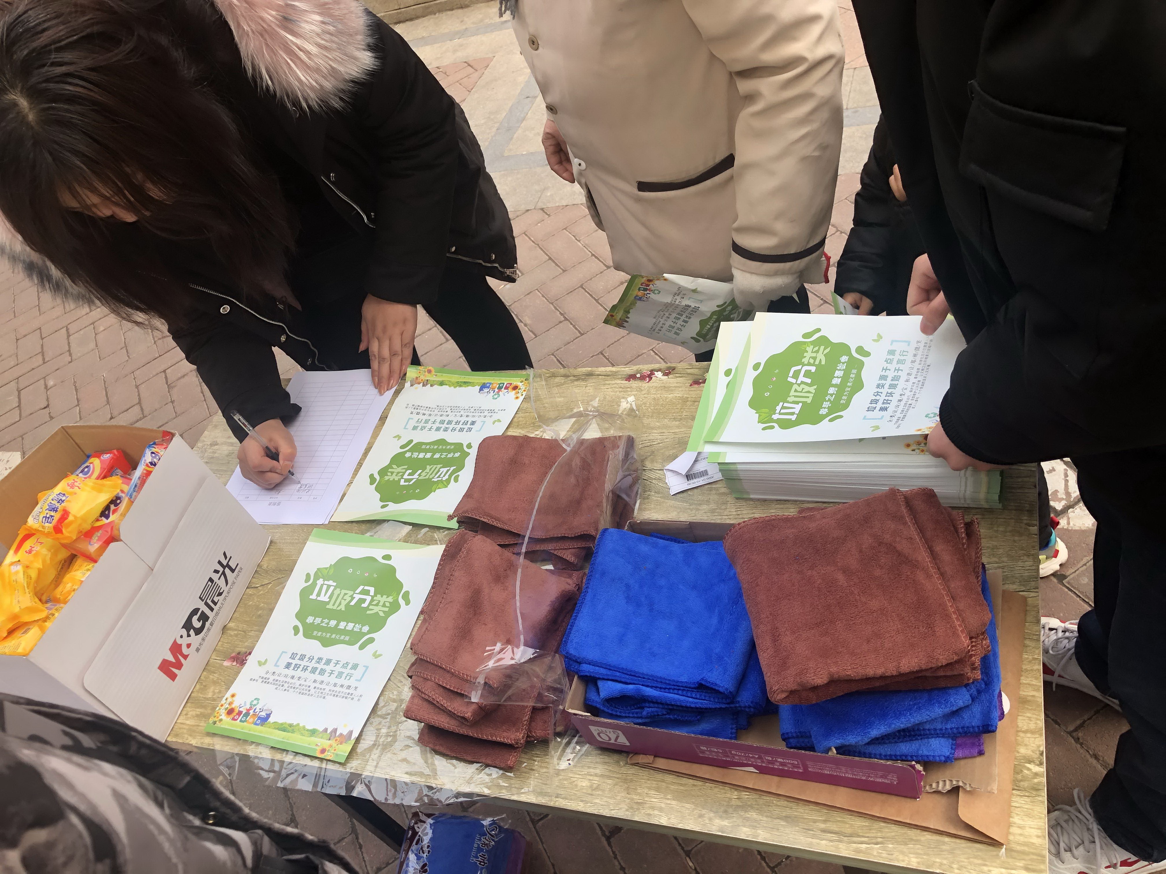 活動(dòng)現(xiàn)場(chǎng),志愿者給居民們派發(fā)垃圾分類宣傳單,并向前來(lái)咨詢的居民解答問(wèn)題,向居民們講授了垃圾數(shù)量的危害性,處理時(shí)的困難,如何分類好垃圾及其意義等。