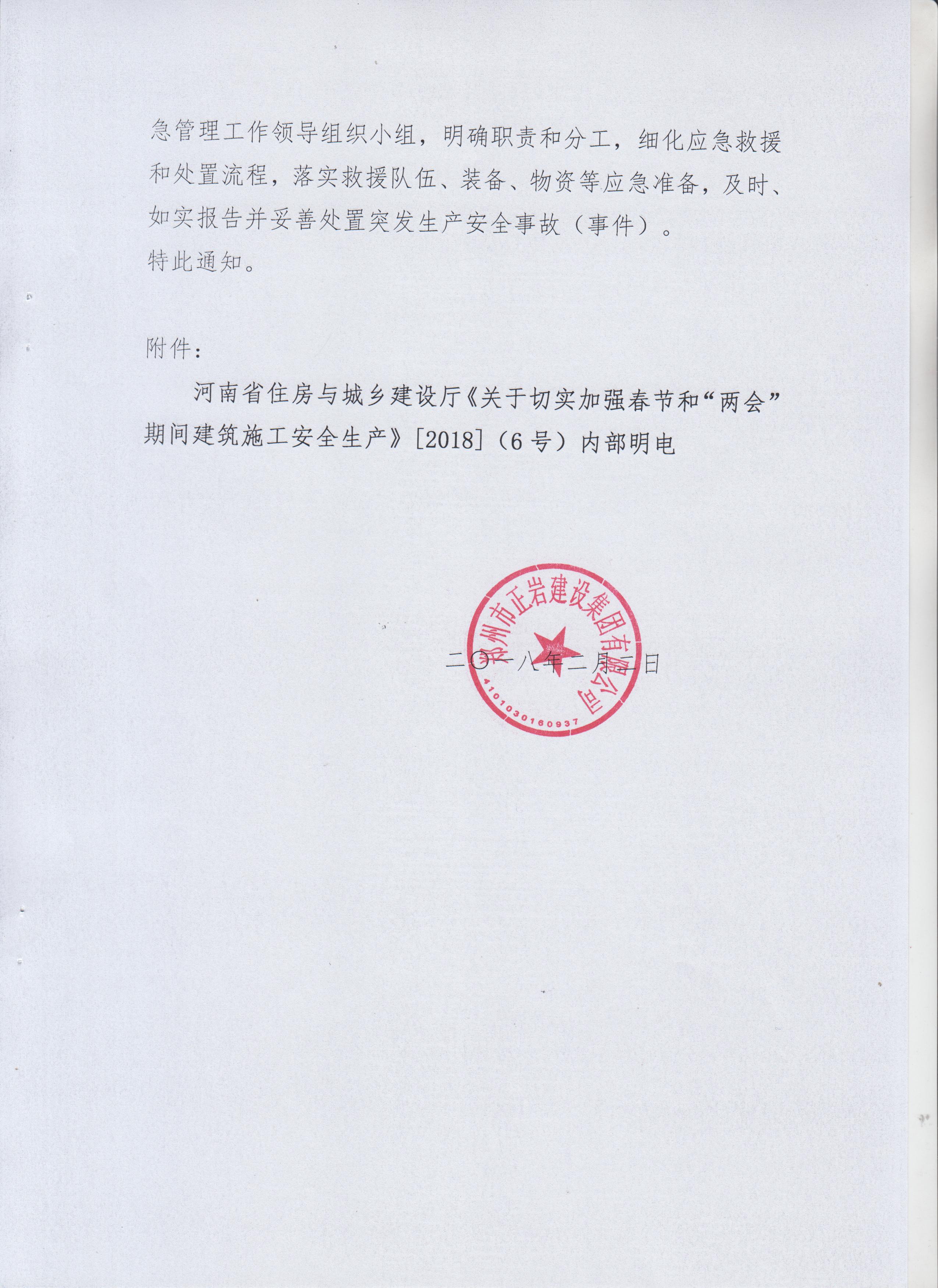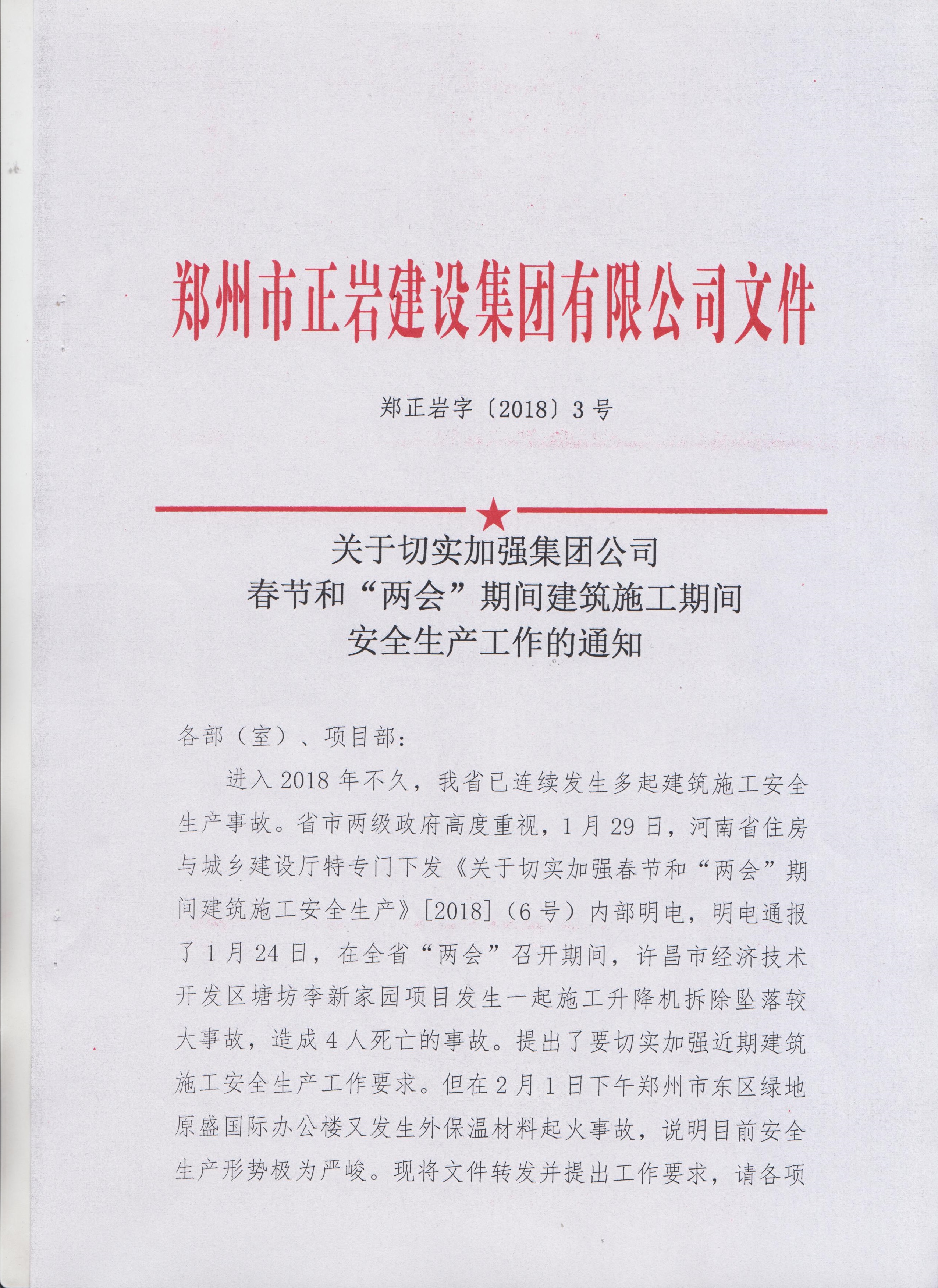 關(guān)于切實(shí)加強(qiáng)集團(tuán)公司春節(jié)和“兩會(huì)”期間建筑施工期間安全生產(chǎn)工作的通知