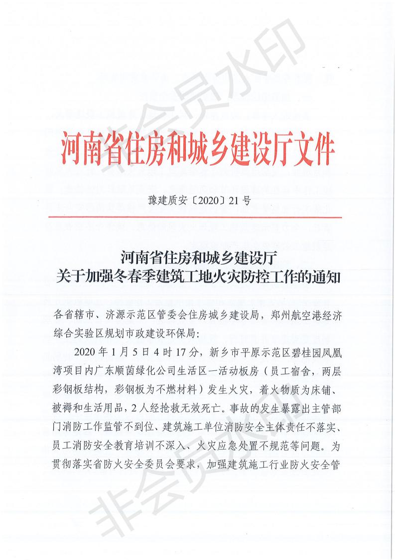 河南省住房和城鄉(xiāng)建設(shè)廳關(guān)于加強(qiáng)冬春季建筑工地火災(zāi)防控工作的通知