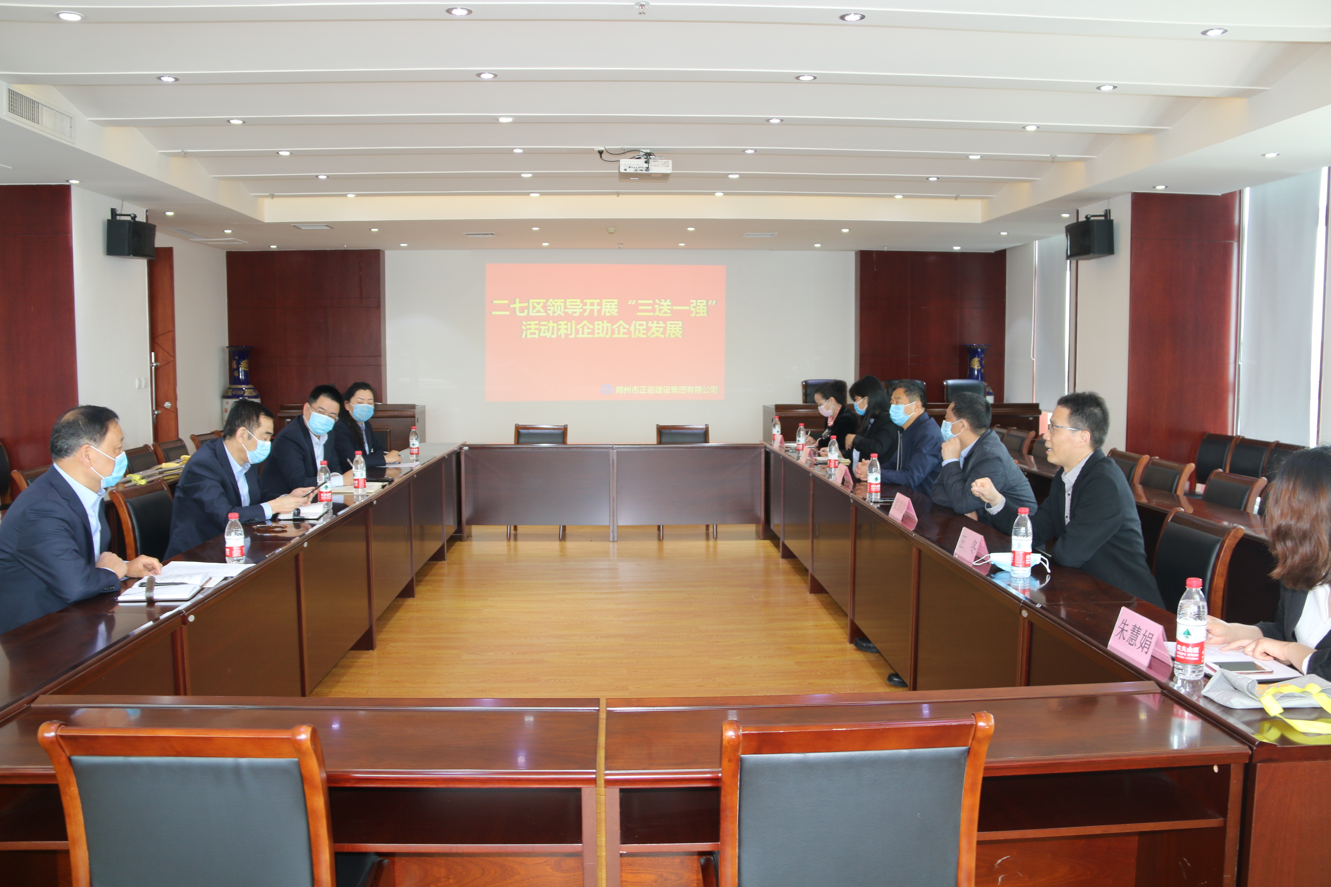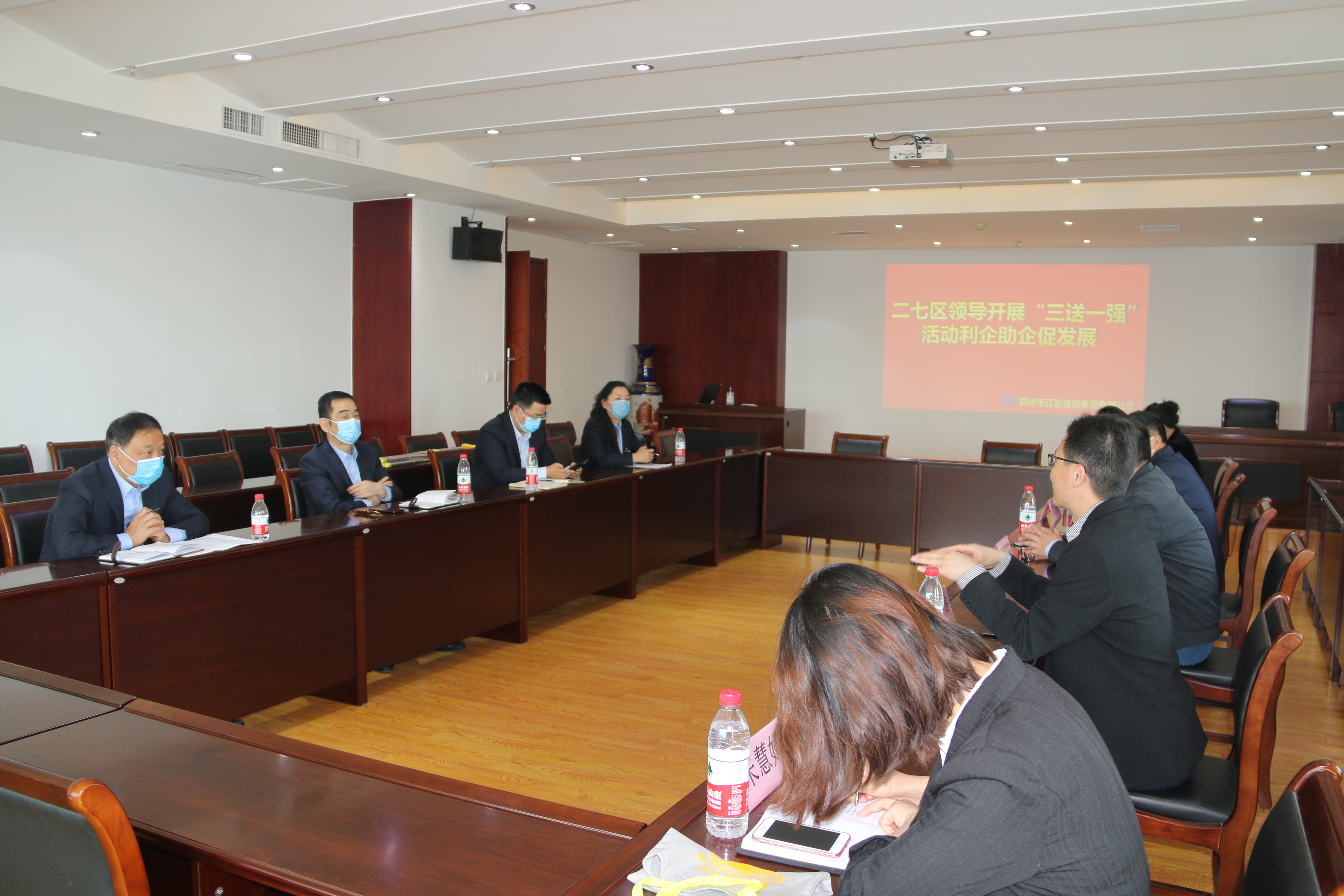 為深入貫徹中央、省統(tǒng)籌推進(jìn)疫情防控和經(jīng)濟(jì)社會(huì)發(fā)展的各項(xiàng)決策部署,鄭州市在疫情防控期間開(kāi)展為企業(yè)“三送一強(qiáng)”(送政策送服務(wù)送要素強(qiáng)信心)活動(dòng)。4月21日上午,鄭州市二七區(qū)人大常委會(huì)黨組副書(shū)記翟國(guó)防和淮河路辦事處主任王冬等一行領(lǐng)導(dǎo)蒞臨鄭州市正巖建設(shè)集團(tuán)有限公司,調(diào)研、督查“三送一強(qiáng)”活動(dòng)開(kāi)展情況,并在現(xiàn)場(chǎng)解讀了“送政策、送服務(wù)、送要素、強(qiáng)信心”的活動(dòng)政策,支持鄭州市正巖建設(shè)集團(tuán)有限公司發(fā)展,勉勵(lì)正巖集團(tuán)堅(jiān)定發(fā)展信心。